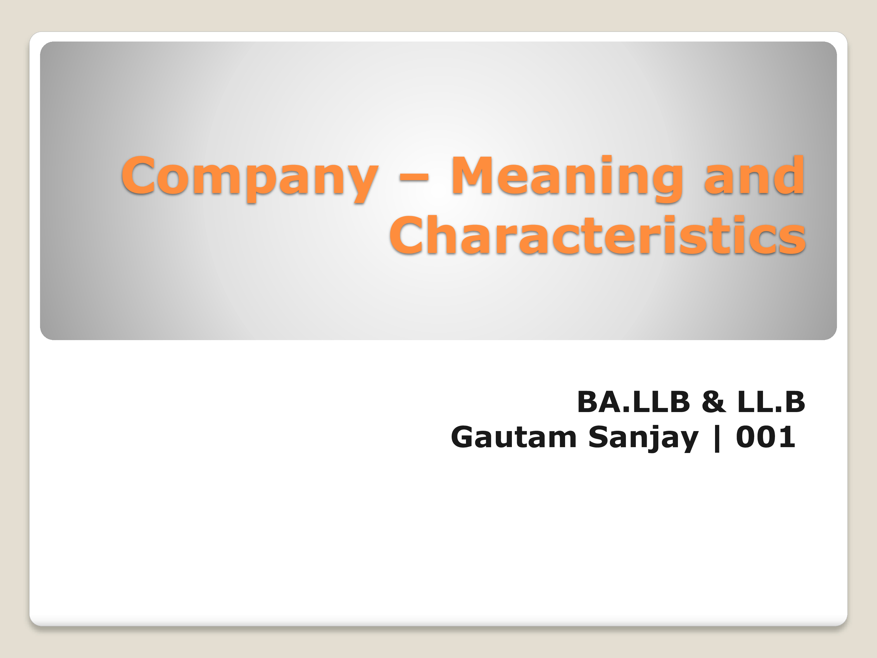 Company Meaning and Characteristics | BA.LLB LL.B Gautam Sanjay | 001